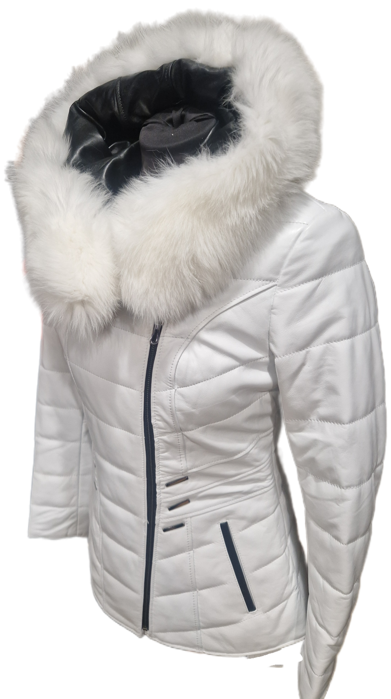 Stílusa: sportos, fiatalos festett róka prémes divatos bőrkabát.
