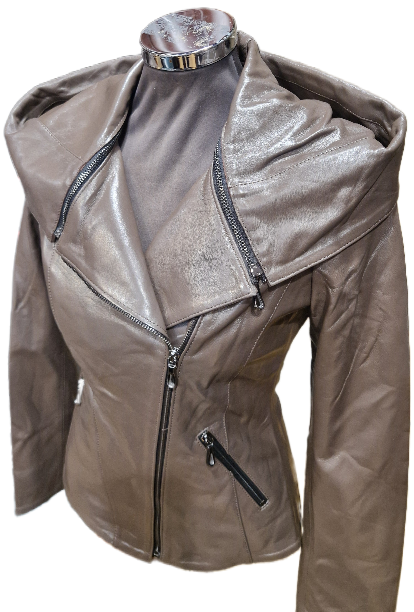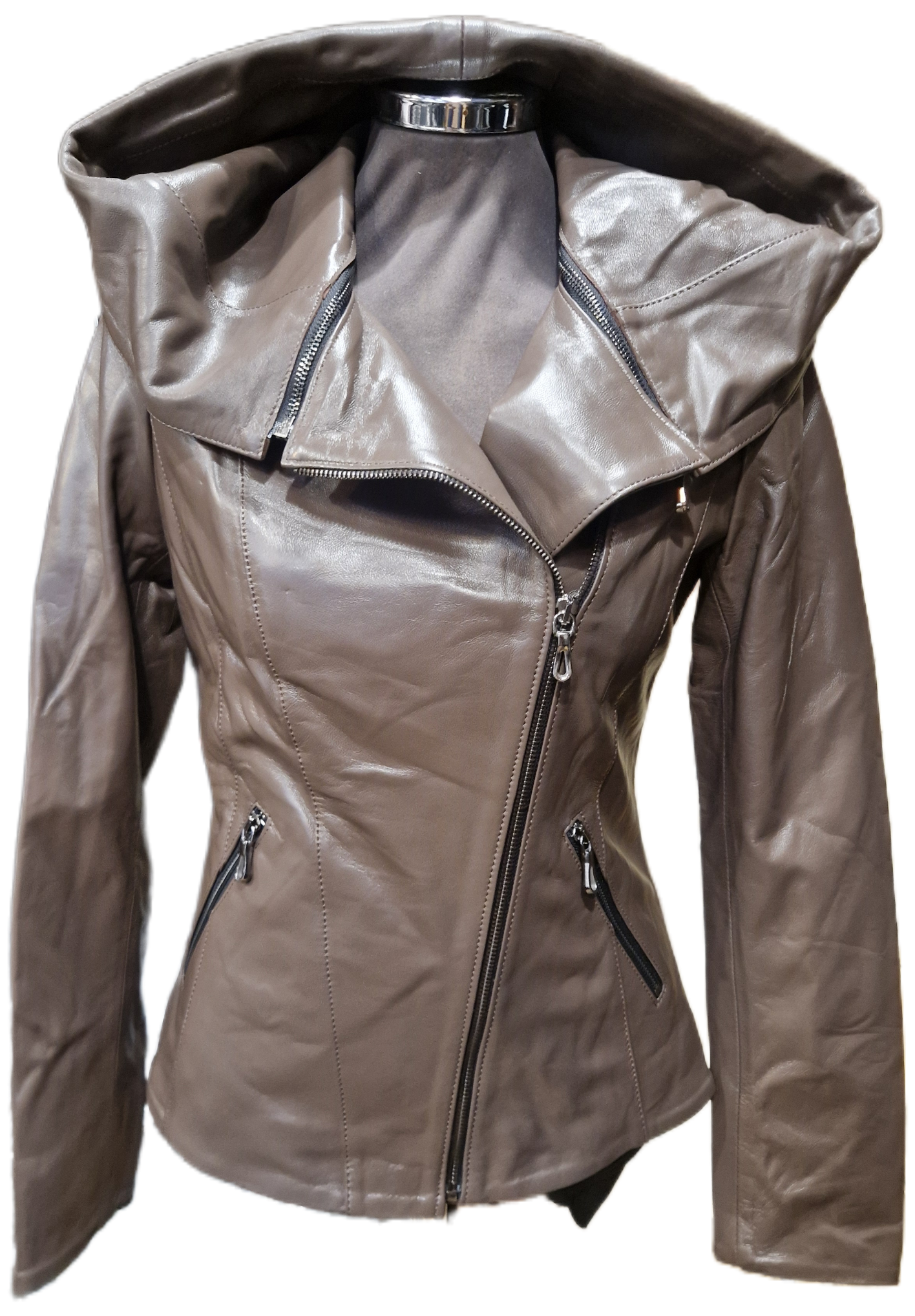 Stílusa: sportos , fiatalos, divatos bőrkabát. Szabásvonala: lecipzározható kapucni helyére gallér,aszimmetrikus karcsúsított fazon Milyen jellegű: divatod átmeneti bőrkabát. Anyaga: juh nappa Bélése: selyem bélés. Milyen alkatra ajánlott: vékony és átlagos alkatú nőkre.