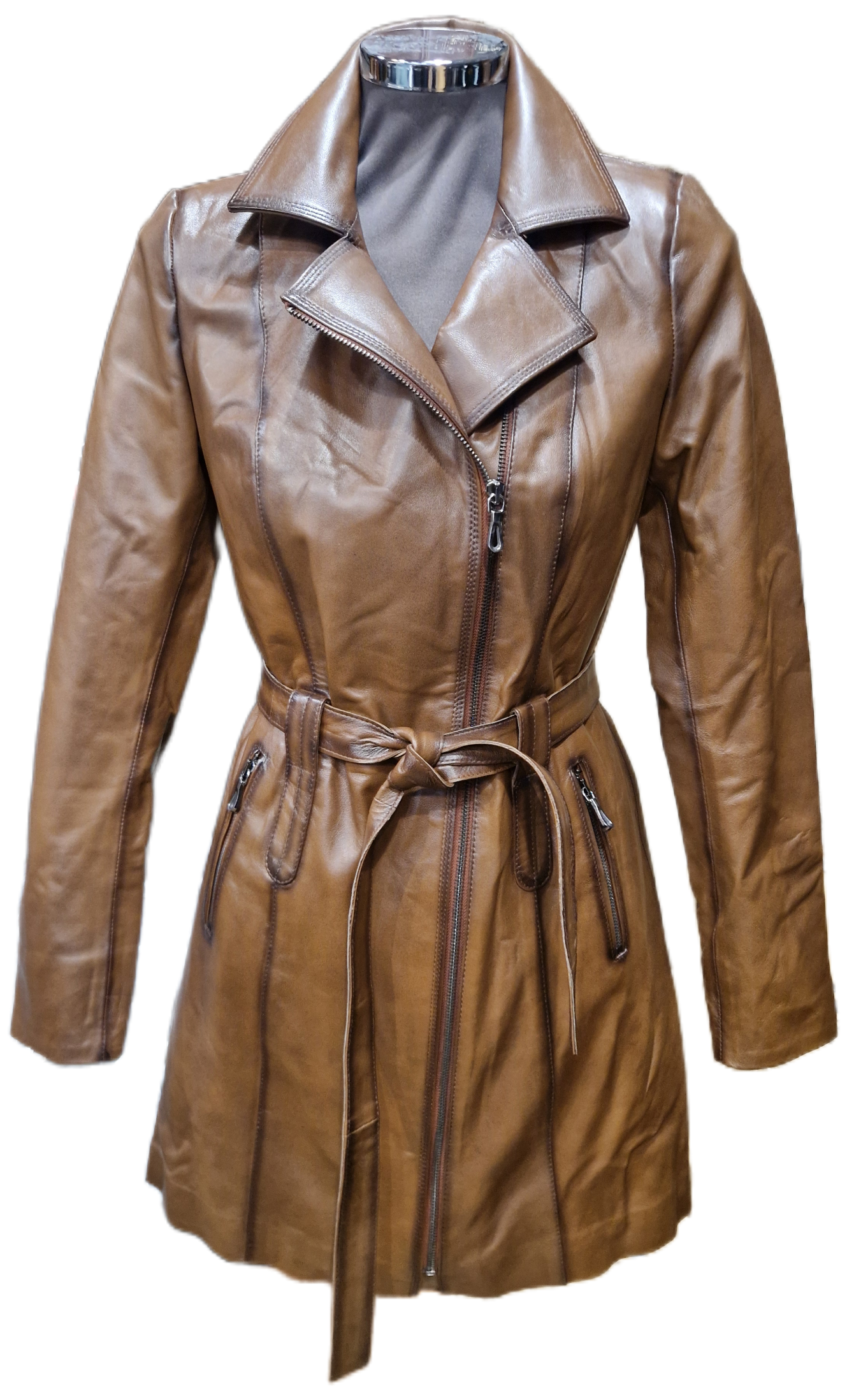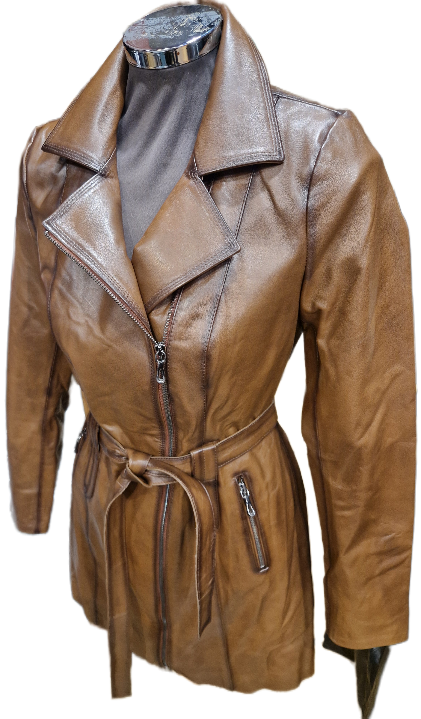Milyen jellegű: 3/4 átmenti bőrkabát.